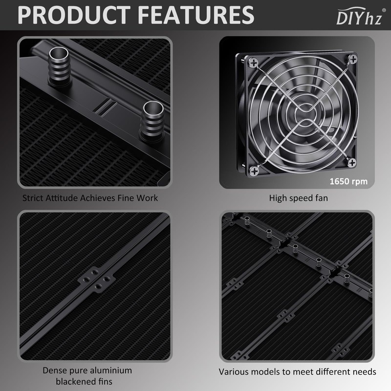 • ★ Made of pure aluminum fins with good heat dissipation, Using the black oxidation paint to increase the thermal efficiency.