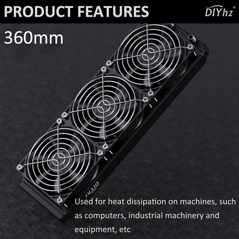 DIYhz Water Cooling Computer Radiator, 12 Pipe Aluminum Heat Exchanger Liquid Cooling Radiator Fans - 360mm Radiator for CPU PC Laser Water Cool System DC12V Black