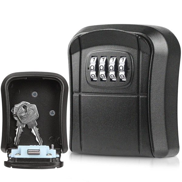 Diyife Key Safe with 4-Digit Combination Code, Waterproof, High Performance Wall Mounted Combination Key, Safe Storage Lock Box for Garages, School, Replacement House Keys (Black)