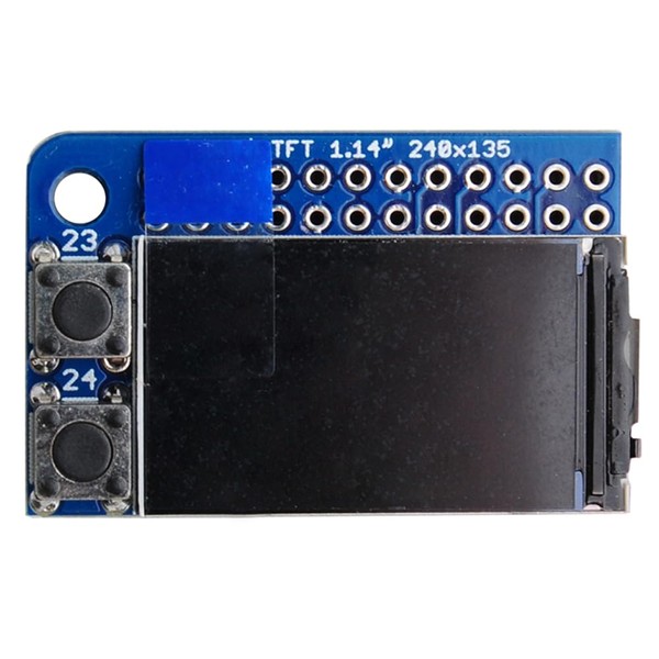 - TFT size:1.14" diagonal, Voltage:3.3V, Interface:SPI, Driver: ST7789, Color:Full color