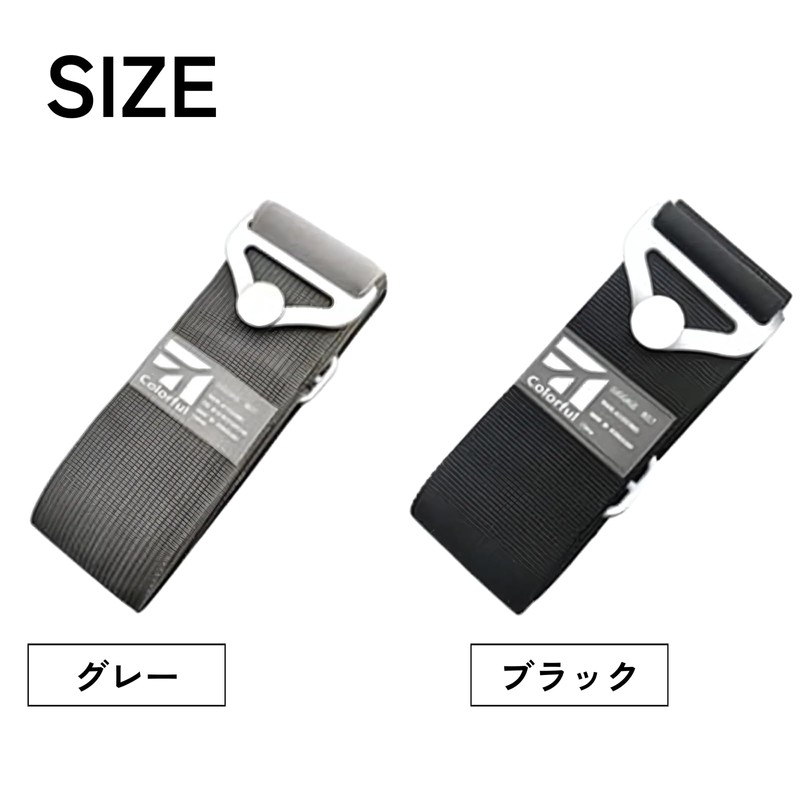 - 【製品内容詳細】スーツケースベルト サイズ:L(長さ最小95㎝-最大205㎝、幅5㎝)/S(長さ最小78㎝-最大145㎝、幅5㎝) 素材:PP+ABS カラー:グレー/ブラック