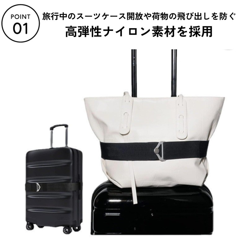 - .【荷物を一括固定!2in1トラベルストラップ】サブバッグや上着、ボックスまで一体化して持ち運べる2in1仕様の荷物固定ベルト。スーツケースや機内持込手荷物に簡単装着でき、両手がフリーになるため移動時も快適。伸縮可能なベルトでフィット感を調整でき、空港や駅での動きもスムーズになります。