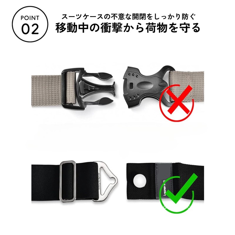 - 【旅行中の安心を守る高耐久荷物ストラップ】強靭なナイロンと金属バックルで構成されたラゲッジストラップは、移動中の衝撃から荷物を守り、スーツケースの不意な開閉をしっかり防ぎます。バックパックやギフトバッグなどの固定にも使える汎用性で、あらゆるシーンに対応する旅の安心サポートツールです。