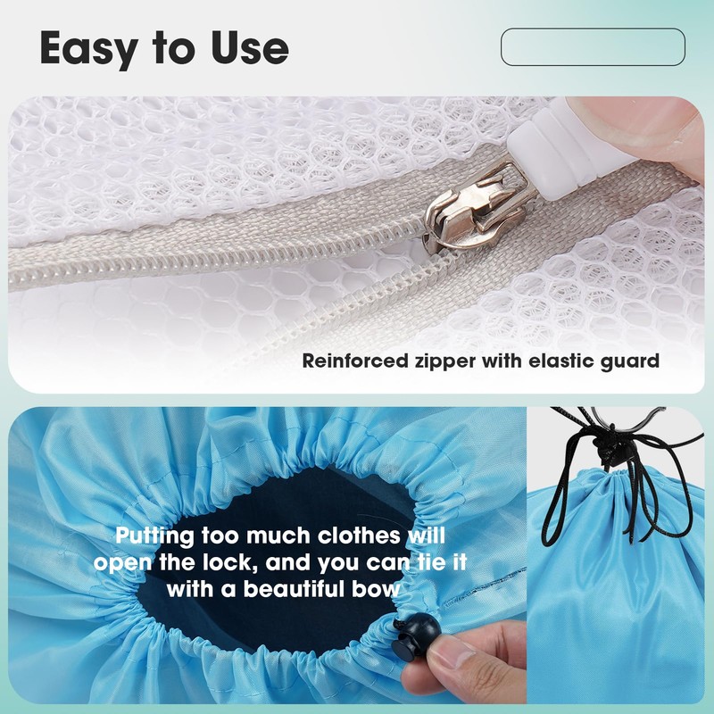 - Material duradero y lavable: estas bolsas de lavandería están hechas de malla de poliéster de alta calidad, que es resistente y garantiza que tu ropa esté protegida durante el proceso de lavado y secado. La malla transpirable permite que penetre el agua y el detergente adecuados, proporcionando una limpieza completa de tu ropa.