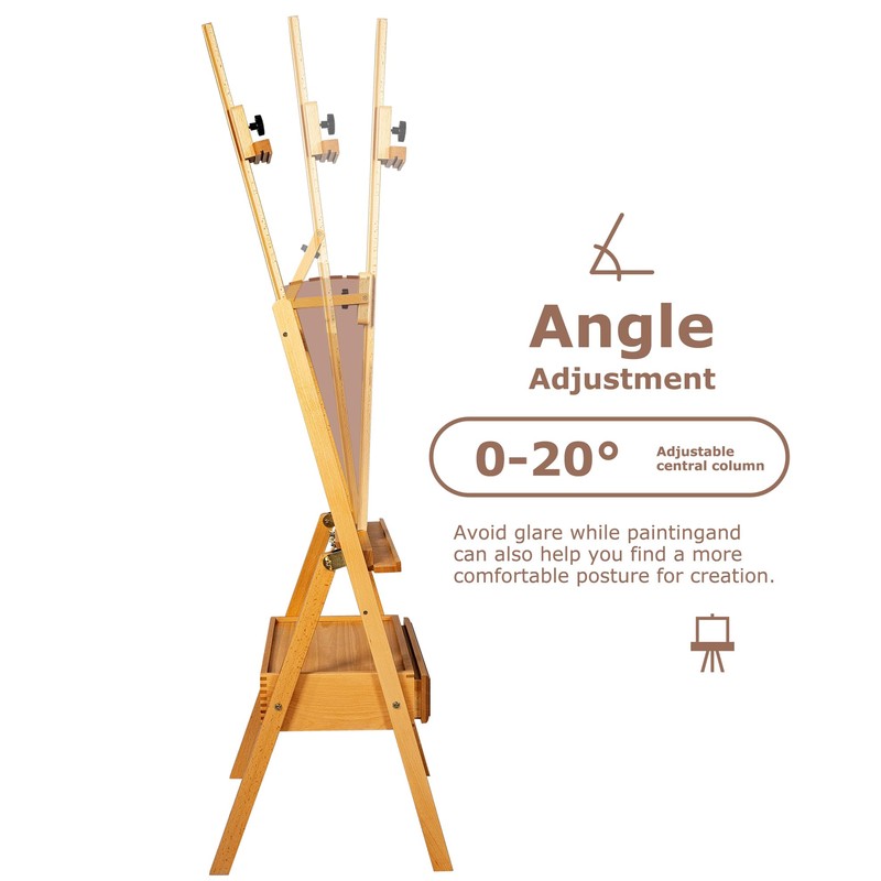 DJAR Large Art H-Frame Easel with Storage Drawer and Shelf, Middle Mast Adjustable to 75", Solid Beech Wood Painting Wooden Easel for Adults, Students, Hold Canvas up to 36", Natural
