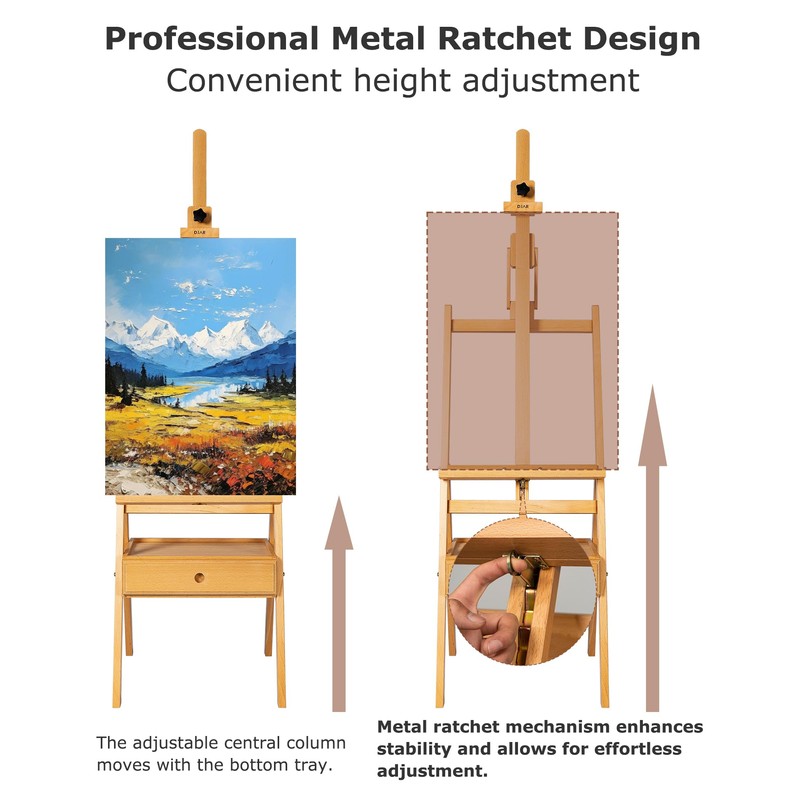 • Premium Beechwood Construction: Handcrafted from solid, German-imported beechwood, this easel is sturdy and durable. Electroplated hardware ensures rust resistance, while professional craftsmanship provides a smooth surface. A detailed assembly guide makes installation quick and easy