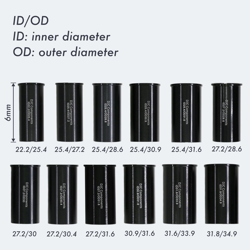DJC Bike seatpost Shim Adapter 100mm 60mm 22.2 25.4 27.2 28.6 30 30.4 30.9 31.6 33.9 34.9 mm Aluminum MTB seat Post Tube Adapter,Short 6cm 22.2-25.4