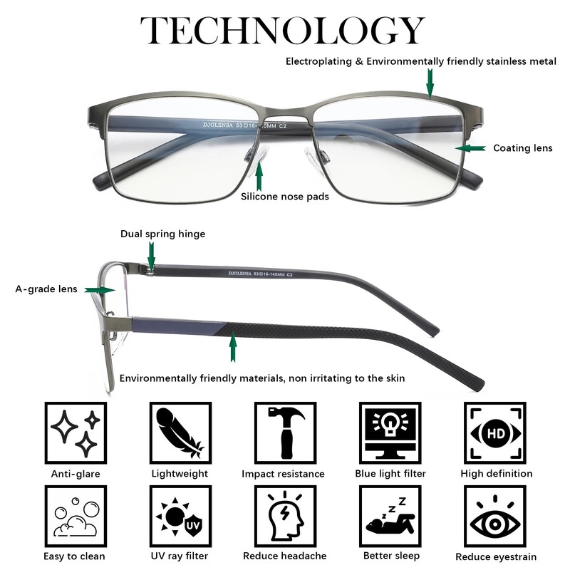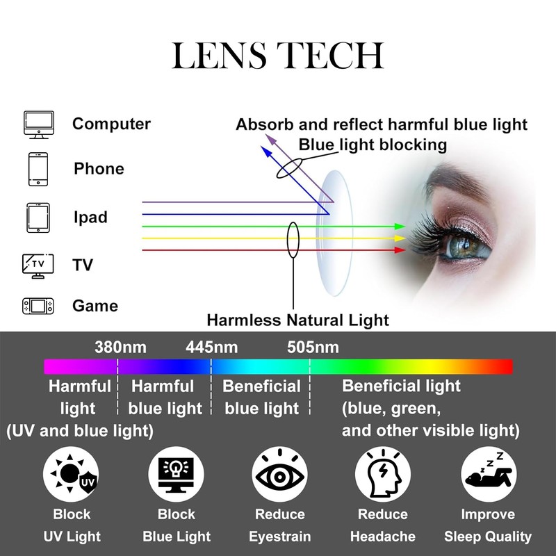1. Anti blue light and UV400 Lenses can filter most harmful blue light and UV400, alleviates visual fatigue and discomfort when you are reading, using computer or phone, watching TV, gaming, protect your eyes better .