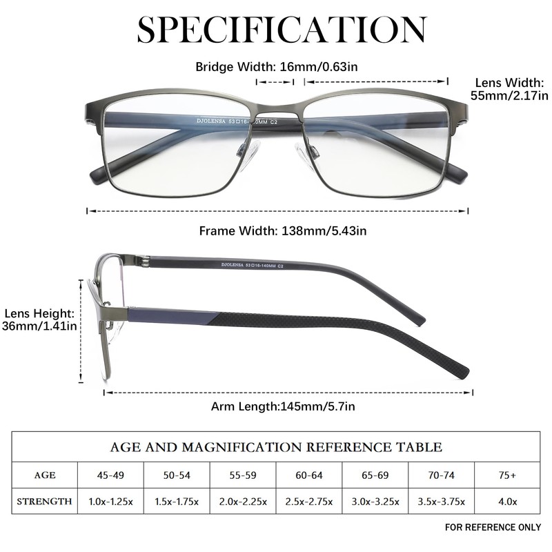 2. Stylish men's reading glasses feature 98% High Transmittance anti scratch lenses,no blurry, give you a clearer vision. Lightweight metal frame reading glasses with spring hinge ensure comfortable fit without pinching face.