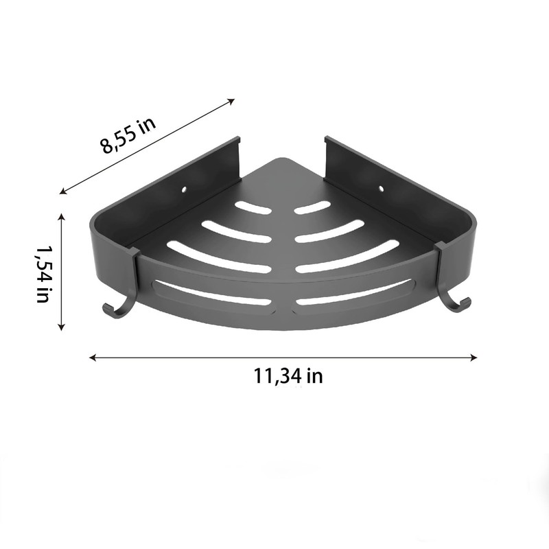 - đăPackage IncludesăEach package contains 2PCS shower corner shelf (8,55"D x 11,34"W x 1,54"H), this corner shower caddy offers ample storage space to keep your bathroom essentials organized and within reach. It also comes with 4 removable hooks for added convenience.