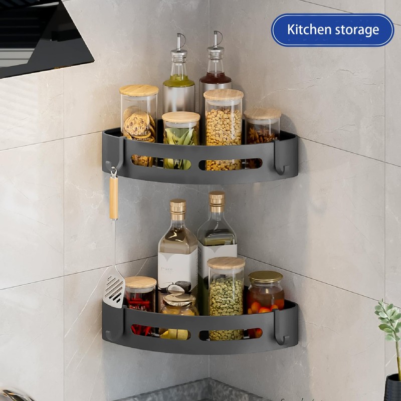 - đăWidely UsedăOur corner shower shelf can not only store bathroom items in the shower or above the washstand. Furthermore, it can also be the spice rack for organizing various spices in the kitchen, and the hanging shelf for storage in the living room.