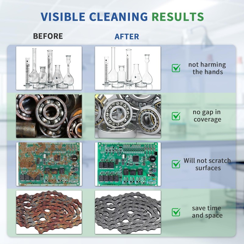 - 40KHz Ultrasonic Frequence for Intensive Rinse: Generally, 40KHz ultrasonic frequency can be used to clean stuffs with complicated surfaces, such as blind holes and deep holes etc. The stuffs to be cleaned can be,but not limited to,bicycle, gun, Bicycle, motorcycle, engine, carburetor parts, oil filters,chains,gears,disc brakes, jewelry, eyeglasses, watchband, coins etc.