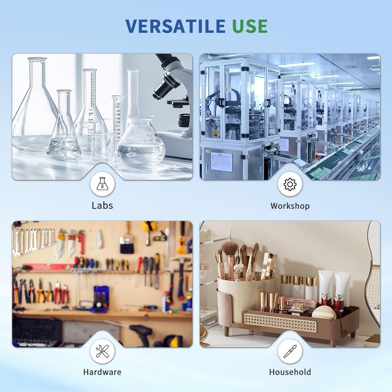 - SUS304 Stainless Steel Drain Valve and Die-casting Tank: Both the cleaning tank and drain valve of the device are made with SUS304 stainless steel materials, and it makes the device be resistant to weak acid and weak alkali. However, please don't use strong acid or strong alkali.
