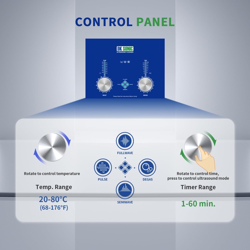 - Multiple Cleaning Modes Available for Different Cleaning Purposes: FULLWAVE mode for intensive rinse of complicated surfaces; SEMIWAVE mode for rough surface cleaning; DEGAS mode for removing ultrasonic fatigue so as to improve cleaning effect; PULSE mode for dynamic rinse of stubborn stains.