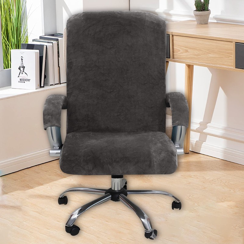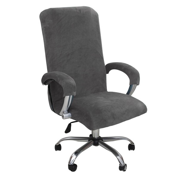 DKSLIPGO Velvet Office Chair Cover with Arm Covers - Stretch Computer Desk Universal Boss Swivel Gaming Chair Covers (Medium, Grey)