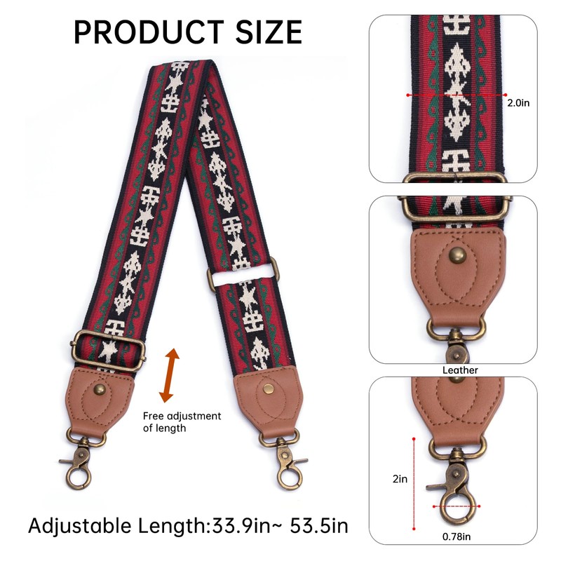 - 【QUALITY】The purse straps is made from cotton with vegan leather on both ends, fade resistant hardware. This crossbody strap for handbags with exquisite vintage jacquard embroidery design and a variety of unique color patterns can easily match your different clothes.
