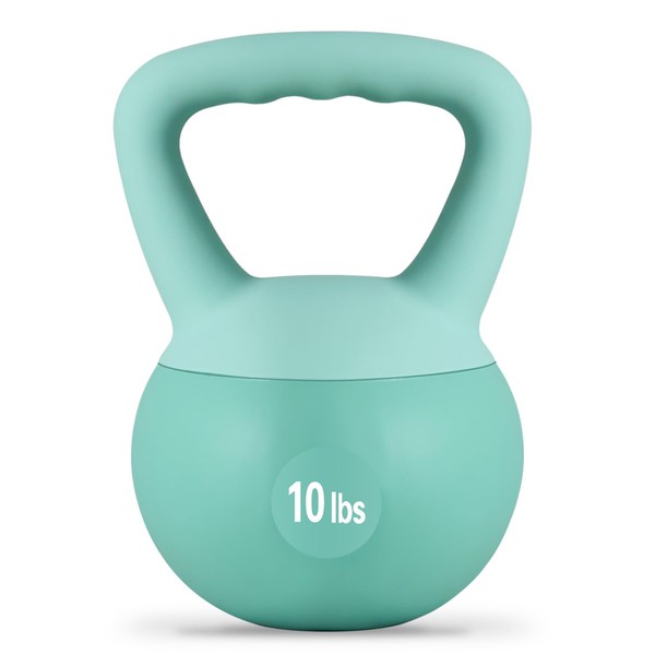 DlandHome Kettlebell, 10lbs, Mint Green, Iron, Soft PVC Filled, Ergonomic Handle, Ideal for Full Body Workout