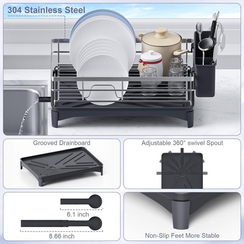- Efficient Drainage: with a draining board and utensil holder for easy use. Groove drainboards and spouts remove excess water, keeping countertops dry and preventing messes