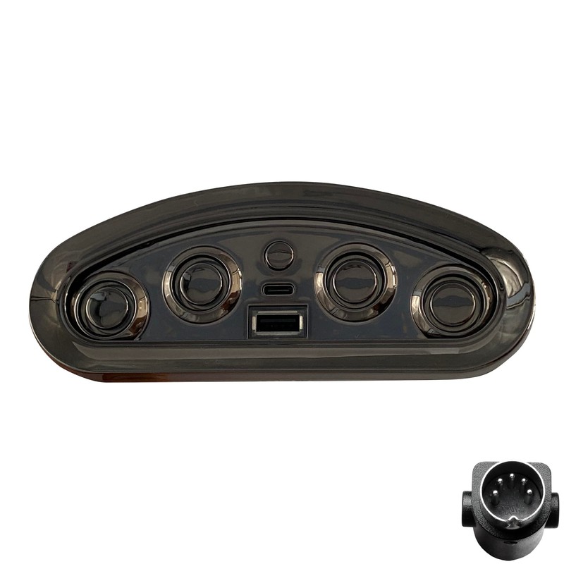 This is mulin 5 button 5 pin switch model AC035 right replacement. It control two motors, can replace mulin MLSK35-G9 R(left side facing) and MLSK35-G6 R(left side facing) , please check your label before ordering. The switch has dual USB A C Ports, you can charge your phone, pad or headphones at the same time.