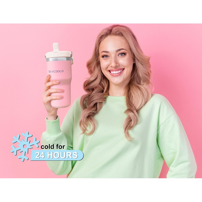 DLOCCOLD 20 oz Tumbler with Handle & Flip Straw for Kids, Insulated Stainless Steel Leak Proof Water Bottle with Sip Lid Home, Car, Sports, Outdoors, Reusable Cup with Straw, Cup Holder Friendly