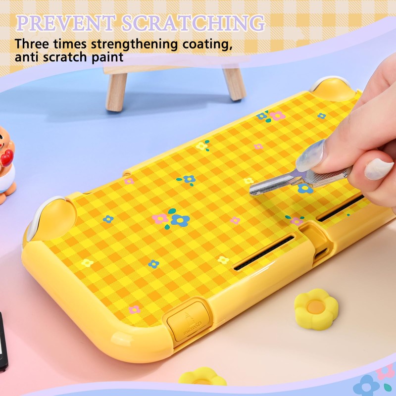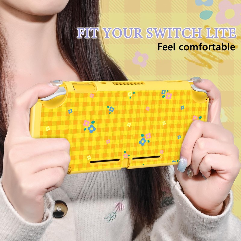 DLseego Flash Switch Lite Protective Case Hard PC Shell Shockproof Scratch Resistant Cover Joy Con Flower Skin with 2PCS Lovely Floral Thumb Grips Caps for Switch 2019 - Yellow