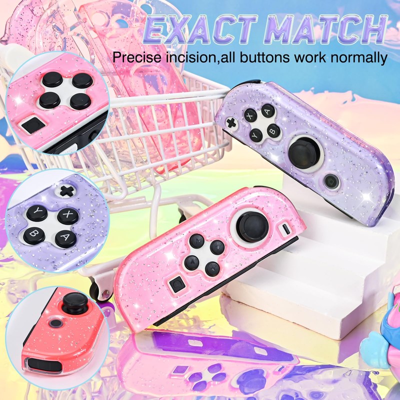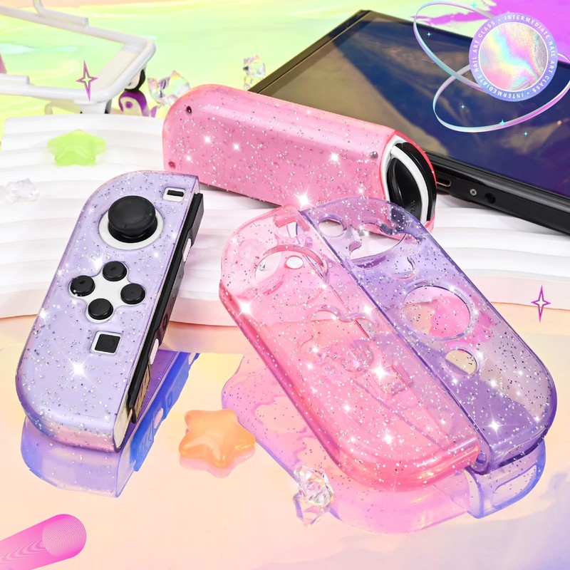 DLseego Protective Case for Switch/Switch OLED Controller,Transparency Glitter Soft TPU Switch Controller Protector Grip Case Cover,Purple+Pink