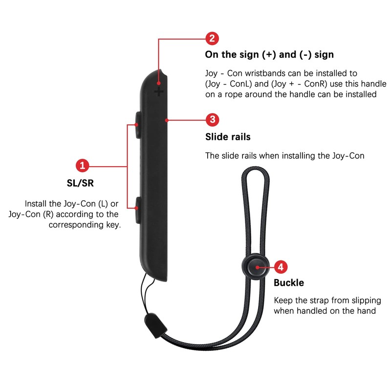 - SMOOTH TO USE This wrist strap features an alloy splint that allows your Joy-Con to slide in smoothly, and it will not scratch your Joycon. The two buttons on the switch controller bracelet enlarge the SL and SR buttons on the Joycon and make it easier to press the SL and SR buttons, which reduces hand fatigue at critical moments and improves your gaming experience!