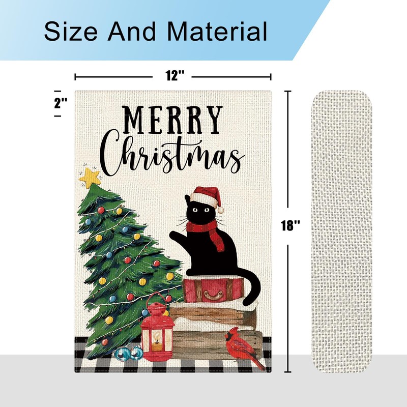 DLZDN Christmas Garden Flag Funny Black Cat Tree Flag 12×18 Inch Double Side Vertical Burlap Farmhouse Yard Sign Winter Holiday Outdoor Decoration