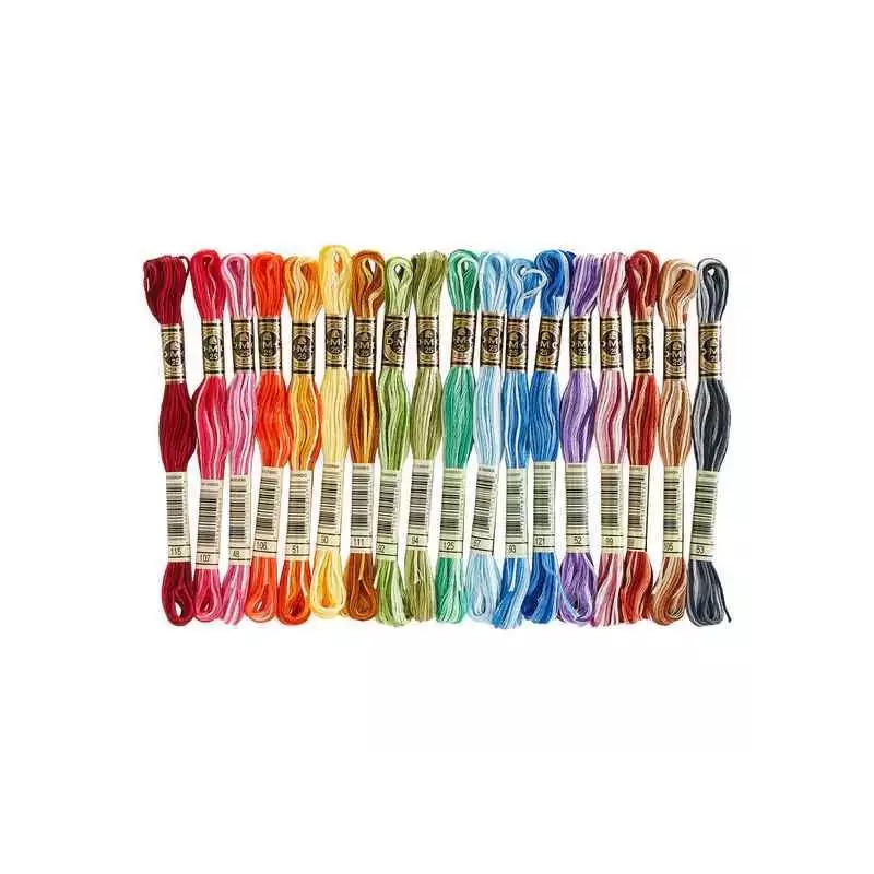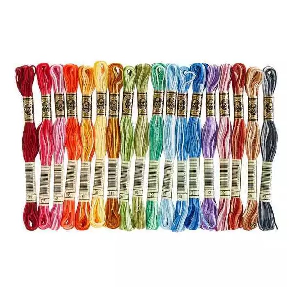 This bundle of DMC's 18 variegated 6 strand floss skeins will provide an abundance of color tones for any stitching project. Each skein is 8.7 yards of 6 strand floss, made from long staple cotton and double mercerized for a brilliant sheen. The premium thread is made up of six easily separated strands, which allows customization of thread thickness by choosing the number of strands.