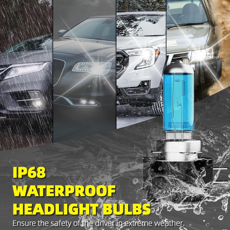 - Over 30,000 Hours Lifespan: The high low beam halogen headlight bulbs are filhalogen with Xenon gas, which helps helps to slow down the process of oxidizing the tungsten inside.With IP68 waterproof dustproof design, our halogen bulbs can last longer.
