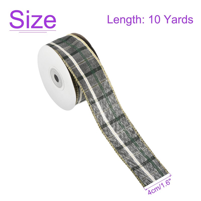 - PACKAGE CONTENT:1 Pack of Gingham Ribbon;Color: Gray, Green And White;Width: 4cm(1.6 Inch);Length: 10 Yards;Material: Polyester