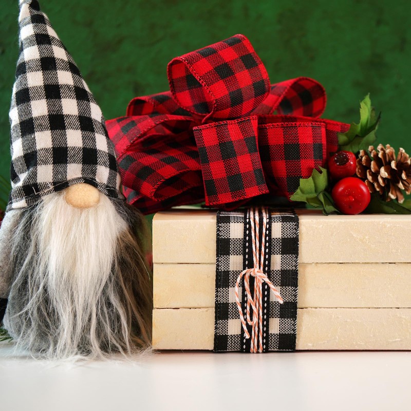 - The gingham checkered ribbon is crafted from great polyester fabric material, odorless, soft and lightweight, durable, resistant to stretching and breakage, perfect for handicraft projects and Christmas decoration.