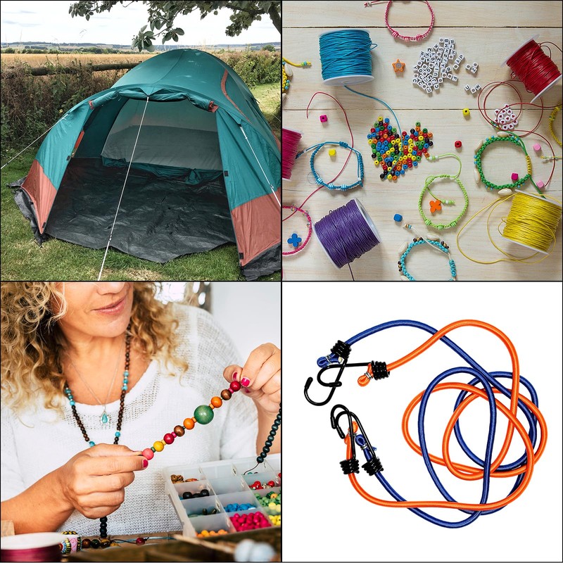 - APPLICATION: Elastic rope can be used in jewelry and bracelet making, connecting various beads to ensure comfortable elasticity of the bracelet. Thin elastic cord is used for DIY production and can be used to make headwear, necklaces, and more. Elastic cording can be used for packaging, fixing items, and tying various items in a bow. Stretchy string can be used for camping, hammock, hook straps in sports and outdoor activities