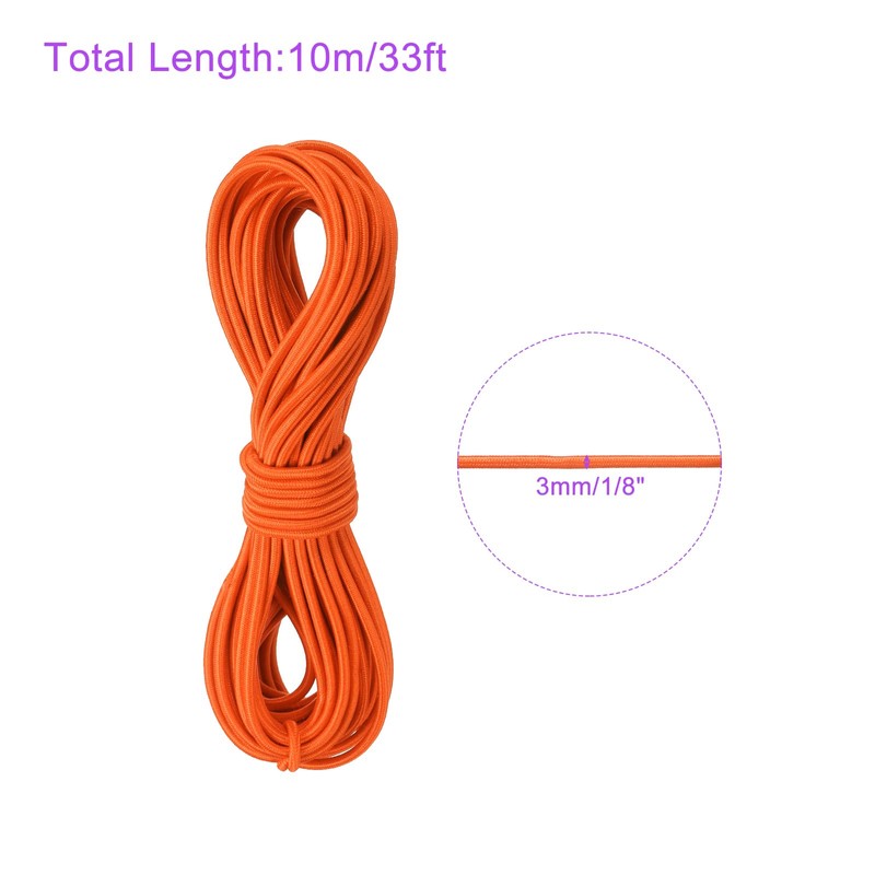DMiotech 1/8"(3mm) 33ft(10m) Elastic String Cord Jewelry Stretchy Cord Orange for Bracelets Bead String Camping Tie Down