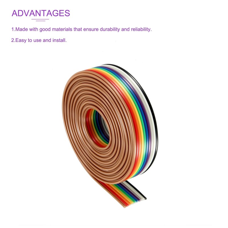 DMiotech 1 Pack 10 Pins IDC Flat Ribbon Rainbow Cable 200 cm 1.27 mm Pitch Breadboard Jumper Wires for Electronic Projects