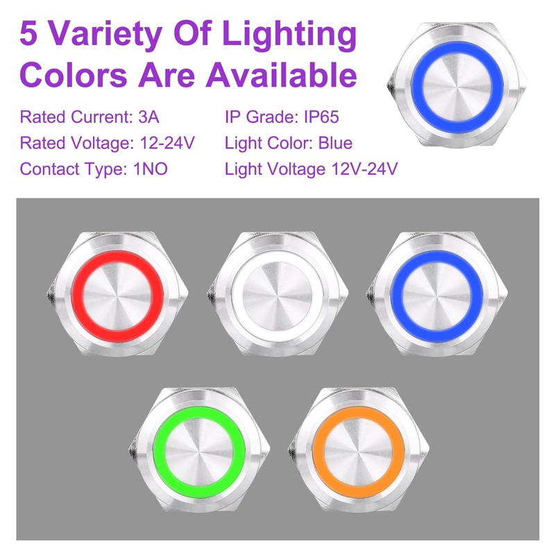 - FEATURE: Metal Construction: This button switch crafted from robust metal material to ensure durability and resilience under challenging conditions.LED Ring Head: Equipped with an LED Ring Head that not only enhances visual appeal but also provides clear status indication for user convenience.