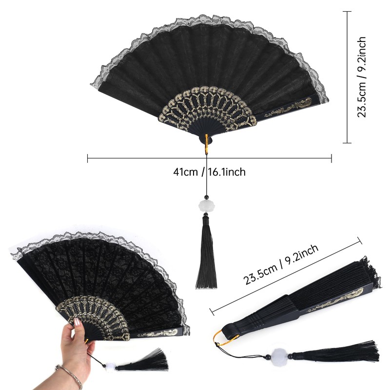 - 💕【Lace hand fans】💕DMJJSD black wedding hand fans consisting of lace, 45g weight, folded size: 24 cm; open: approx. 50 x 24 cm, black hand fans fits well in your handbag when folded.