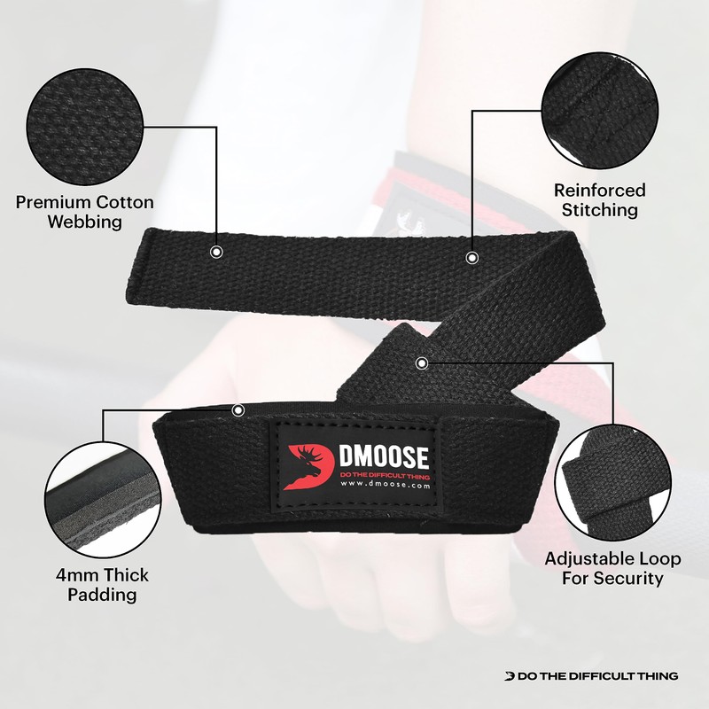 DMoose(ディームース) リフティングストラップ 24インチ(ペア) リストストラップ ウェイトリフティング デッドリフト パワーリフティング ボディービルジムトレーニング用 ネオプレンパッド入りサポートコットンストラップ 最大限のハンドグリップ筋力トレーニング用