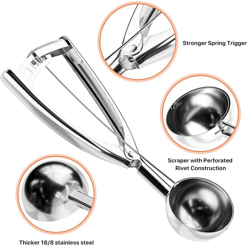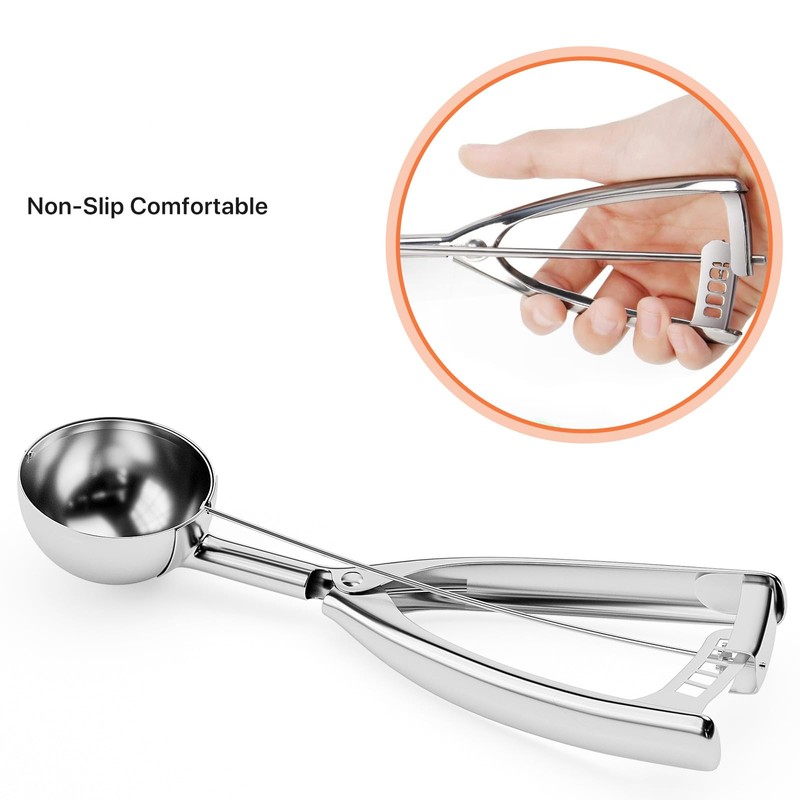 - Easy to Use Our cookie scoop comes with spring trigger system, it could perfectly relieve pressure on your wrist and hand when you use it.