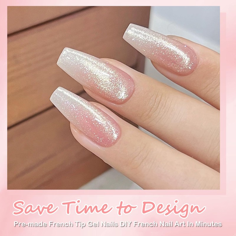 - 【Ombre Stick On Nail Set】- DMQ False Nails Kit includes 240pcs Natural Gradient press on nails, all necessary tools as nail files*1, nail buffer*1, cuticle pusher*1,nail glue*1, jelly glue*5 and the box with press on nails. Natural gradient pink with sparkle cat eye design, elegant and never fade, can make nails more delicate, and can also cover broken nails and protect nails.