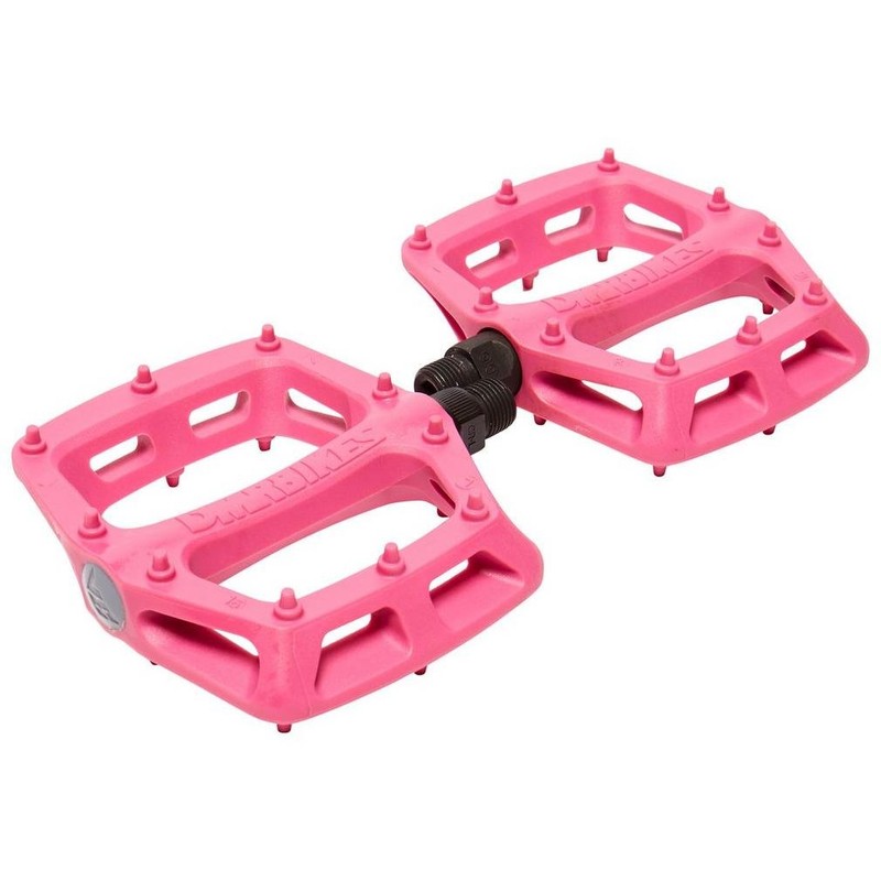 A Nylon evolution of DMR's V12 body design. Equipped with the same concave footprint and narrow profile DMR pedals are known for, whilst spinning on a Dual DU bushing system to provide the value of a plastic pedal with a thoughtful approach to increased durability.Chromoly axleDual DU bushing systemFull length 6mm off-road pins for added gripItem SpecificationsPedal TypePlatformColorPinkPedal Spindle9/16"Pedal Body MaterialPlasticDefined ColorPinkWeight327Spindle MaterialChromoly Steel