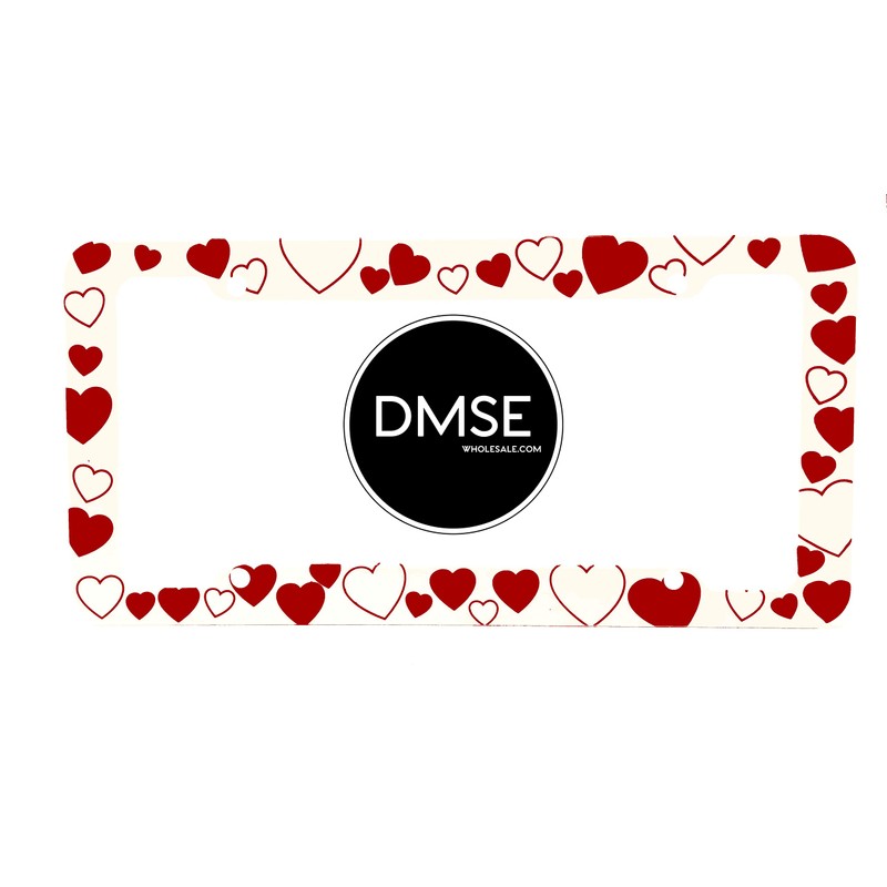 DMSE Plastic License Plate Frame Cover Holder Cool Decorative Design for Any Vehicle Car or Truck (Hearts)