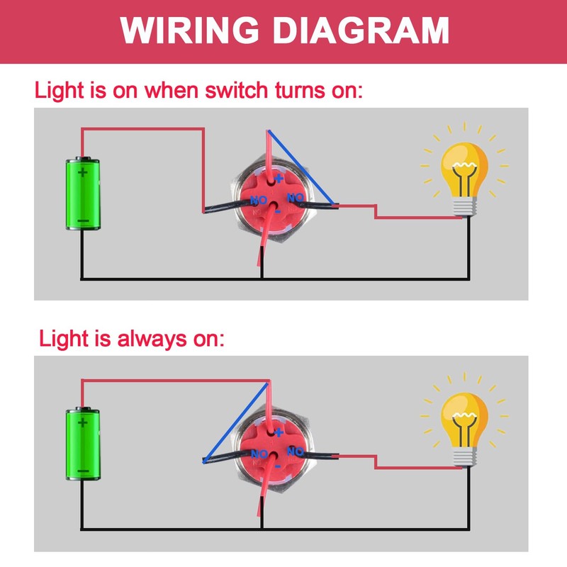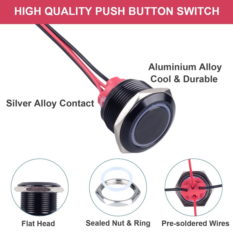 DMWD 2Pcs 19mm Metal Latching Push Button Switch Waterproof 7Amp 12V-24V ON-O...