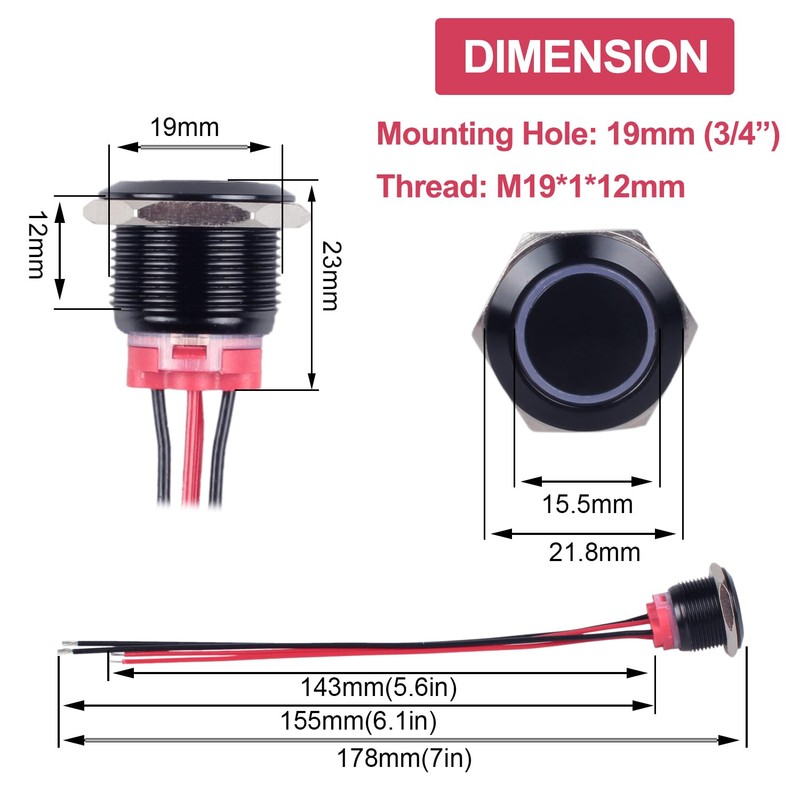 • High current: 7Amp 12-24VDC; LED Pattern: Halo Ring; LED life: 40, 000 Hours; Mounting Hole: 19mm(3/4")
