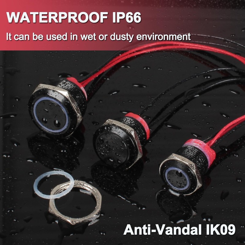 • Protection Degree: IP66 Waterproof and dustproof; IK09 Anti-vandal rate. It can be used in wet or dusty environment; But Don’t immerse the button switch in water