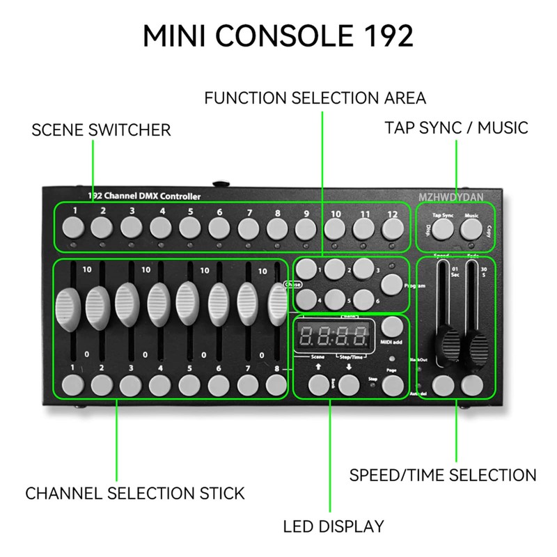 DMX Controller, DMX192 Console Mini DJ Light Controller Lighting Mixer Board Console for Light Shows Controller Panel Use for Editing Program1