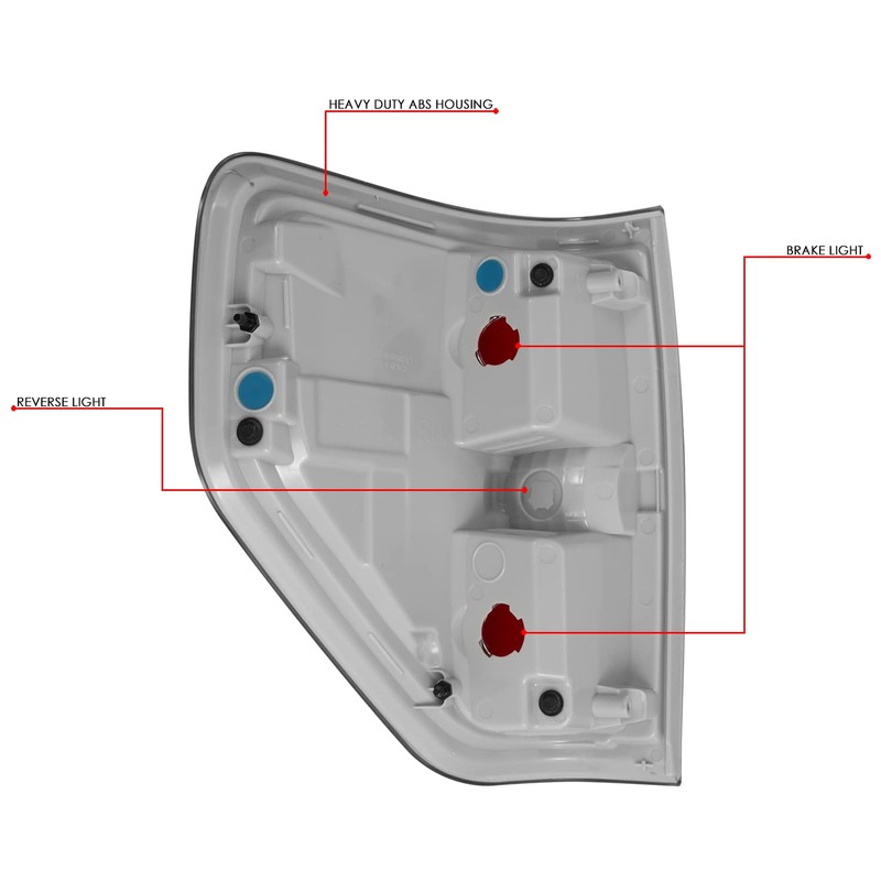 DNA MOTORING TL-ZTL-006-CHRD Pair of Red Polycarbonate Lens Tail Lights Compatible with 2009-2014 F-150, w/o Bulb Sockets