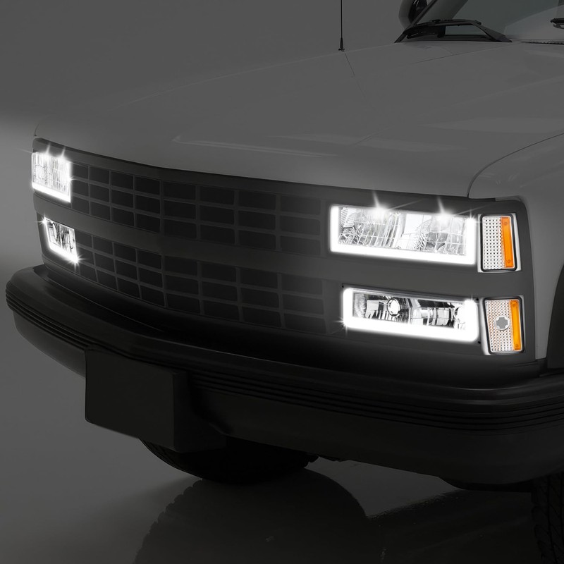 DNA MOTORING U Style LED DRL Headlight+Bumper Signal+Corner Lamps Set Compatible with 88-93 Chevy C/K1500-3500,Chrome/Amber,HL-LB3-8P-C1088-CH-AM