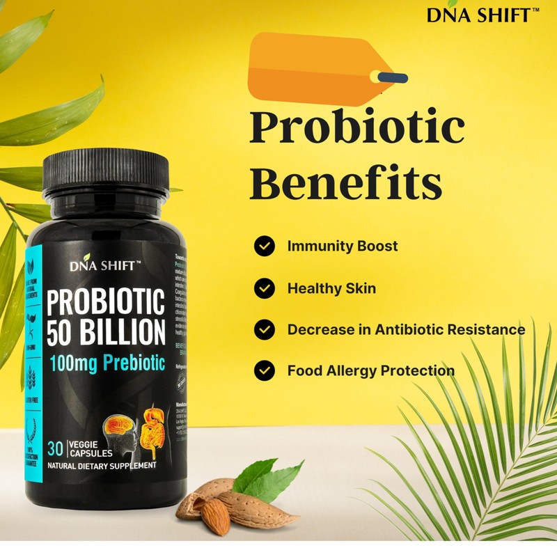 DNA SHIFT Probiotics 50 Billion - 11 Strain Live Probiotic Prebiotic for Men & Women - Best to Support Digestive & Immune Health. with Lactobacillus Gasseri - Guaranteed Potency to Expiration