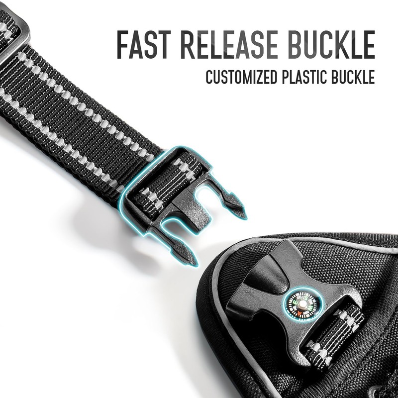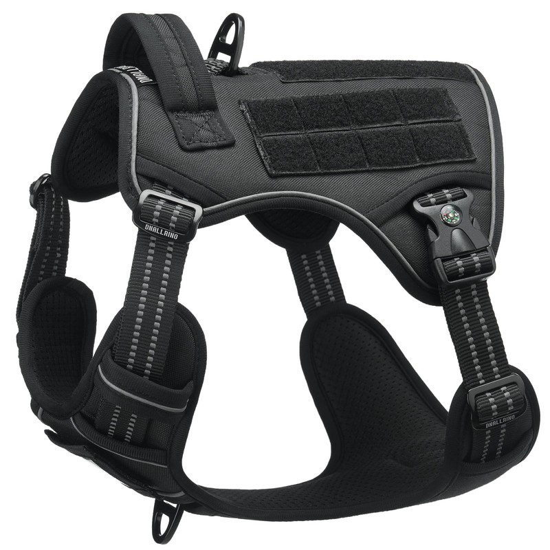- Built to Last: Crafted from rugged 1050D nylon, this heavy-duty dog harness ensures durability and wear resistance, suitable for various outdoor activities. The well-padded pressure points guarantee your dog's comfort, while the breathable mesh lining keeps them cool.